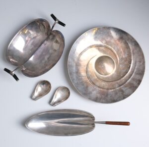 Designers frequently allowed organic shapes to guide their work. Paavo Tynell translated seashells into lamps, Tapio Wirkkala turned whirlpools into silver dishes, and moss into sculptural glass. These designs bridged ornament and utility while staying deeply rooted in