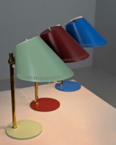 The lamp was produced in full brass, classic black and white, and a range of other colours. This variety allowed it to adapt to different environments—from offices and institutions to private interiors—while maintaining a consistent identity.