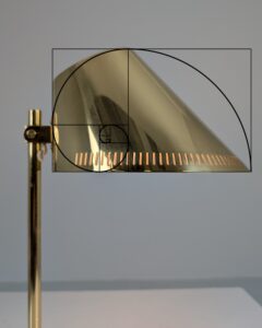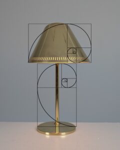 While there are no definitive documentations or drawings proving that the 9227 was mathematically designed according to the golden ratio or Fibonacci sequence, which Tynell often used in his perforations, the lamp exhibits a strong sense of proportional balance consistent with classical design principles.