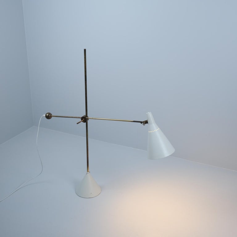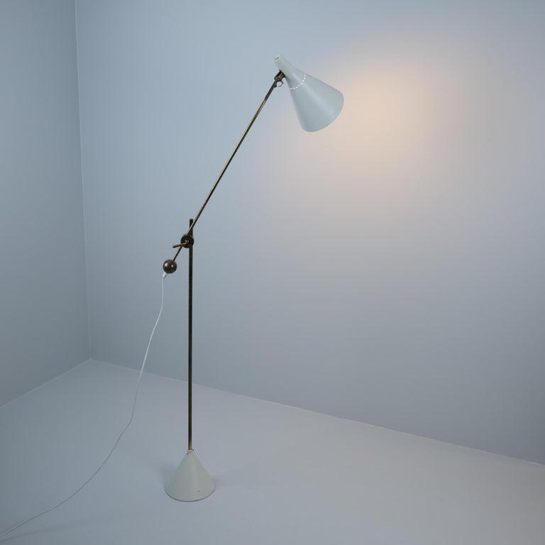 A Tapio Wirkkala Adjustable Floor Lamp K10-11 in White and Brass, Idman 1950s