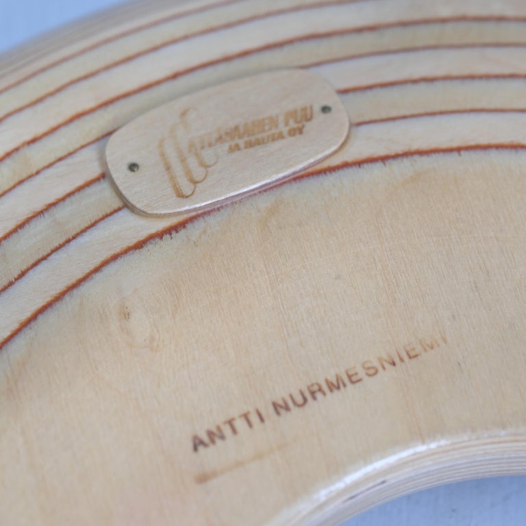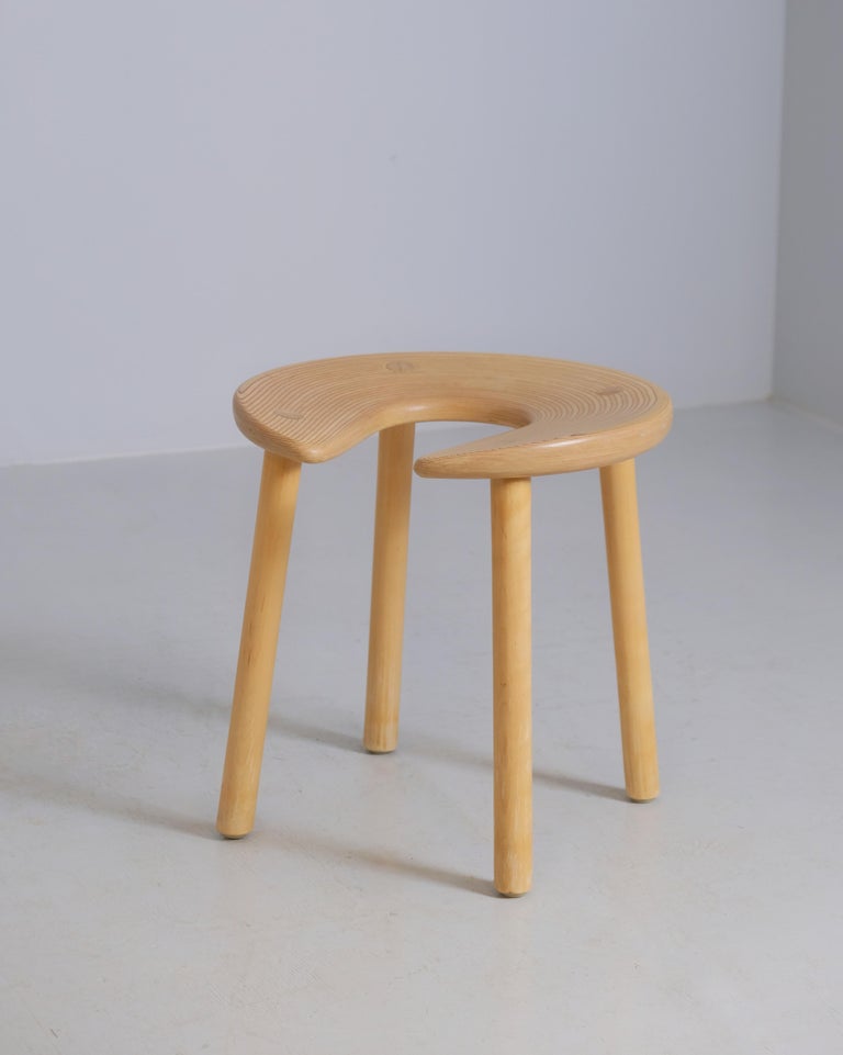 A stool by Antti Nurmesniemi, designed for the sauna section of the Palace Hotel in Helsinki in 1952. Antti’s version and interpretation of a stool brilliantly modernised the traditional folk sauna stool while keeping the functional horseshoe-shaped seat that doubled with hygiencal functionality. In addition to the aesthetical features developed, Nurmesniemi also shaped the seat with an inclination to the inside that serves to drain water off the seat.