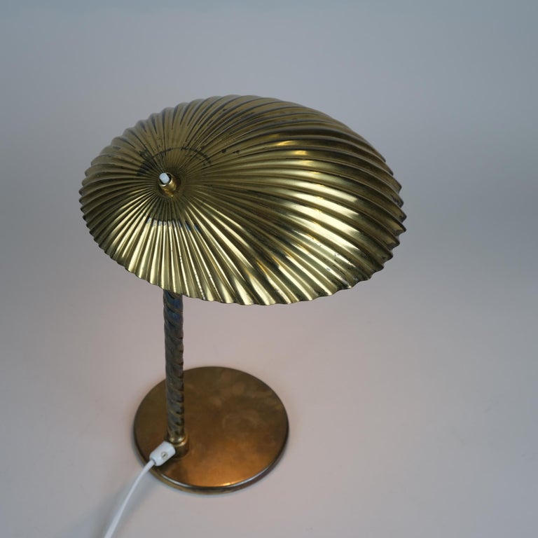 Large Paavo Tynell Full Brass Seashell Table Lamp Model 5321, Taito Oy 1940s