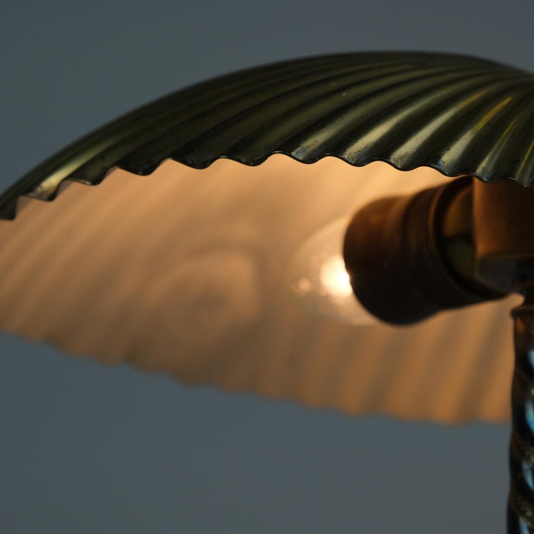 The lamp has an exceptionally beautiful patina with some darker spots throughout the structure. A beautiful piece for interiors and collectors looking for something special.