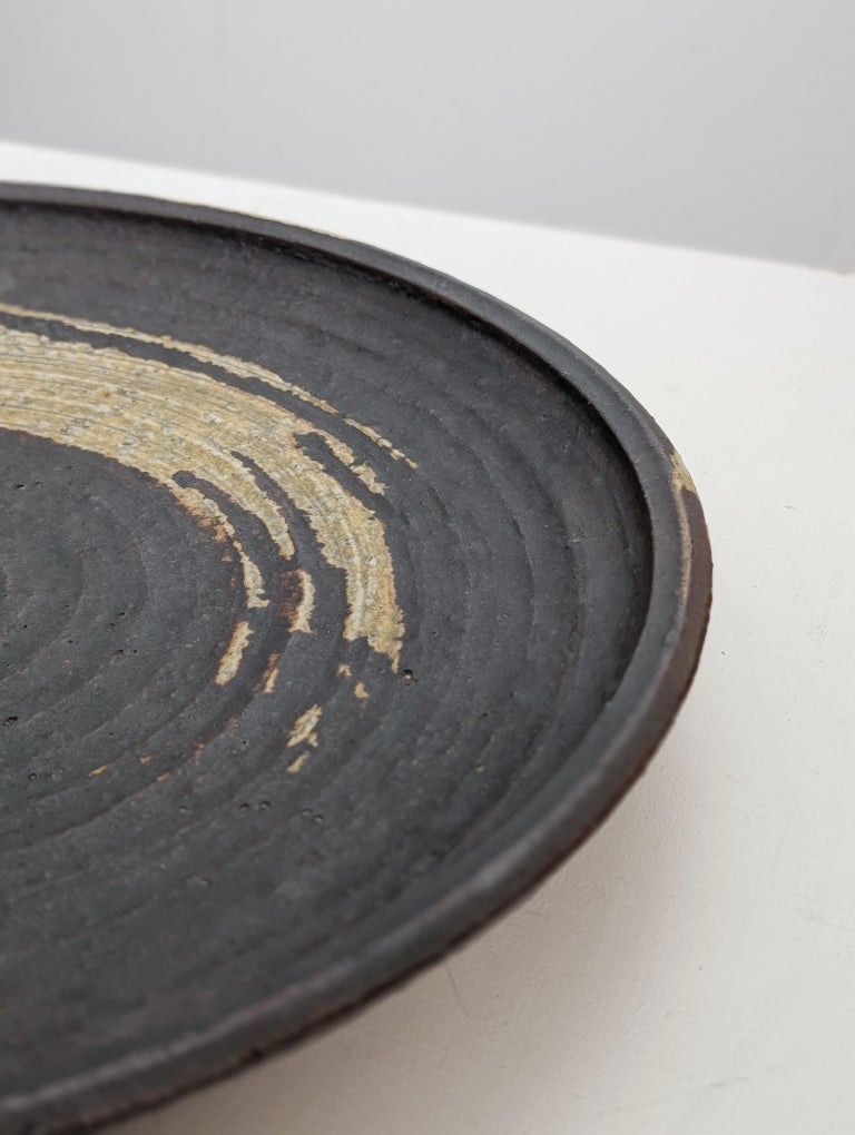 A truly beautiful and one of a kind piece designed by the Finnish designer Annikki Hovisaari for Arabia. The dish is in earthly natural colours bringing an organic feel and adding a comforting dimension to the art piece. Signed to the back AH and Arabia.