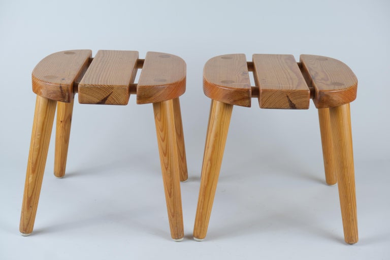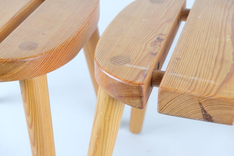 A beautiful pair of modern Finnish sauna stools from the 1970s in the spirit of the modern Scandinavian design. Although the designer is unkown, these stools match any of the top designers in Finland and remind us of Ilmari Tapiovaara’s, Bertel Gardberg’s, Antti Nurmesniemi’s and other designer stools, except with a much more competitive pricing. The craftsmaship is of high standards and although they have normal ware, the patina and vintage condition are very nice.