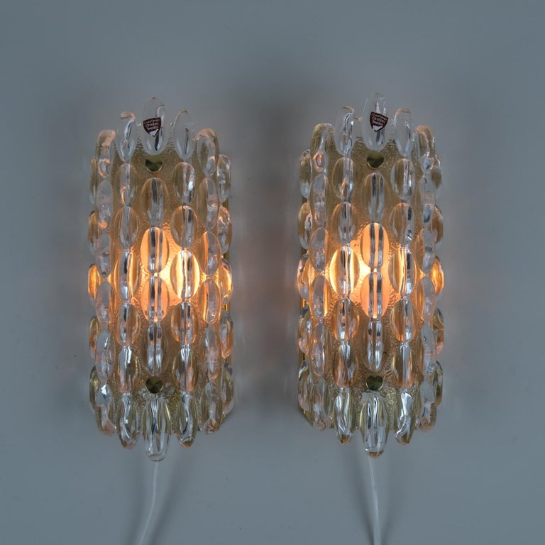 Pair of Wall Lights, Carl Fagerlund, Glass & Brass, Orrefors