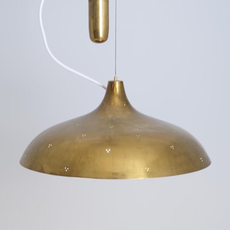 Rare Paavo Tynell Adjustable Perforated Brass Ceiling Pendant A1965, Taito 1940s