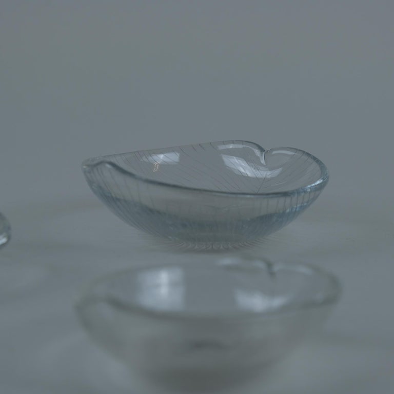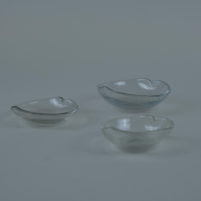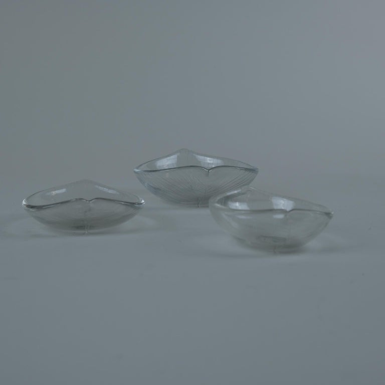 Set of 3 Tapio Wirkkala Line-engraved “Leaf” Glass Art Pieces, Iittala